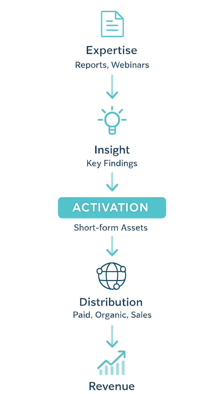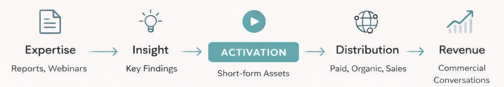 Valuable flagship content gets gated, launched once, and forgotten. We transform approved assets into structured, motion-led activation that drives demand across marketing and sales — without reopening legal or restarting the approval cycle.